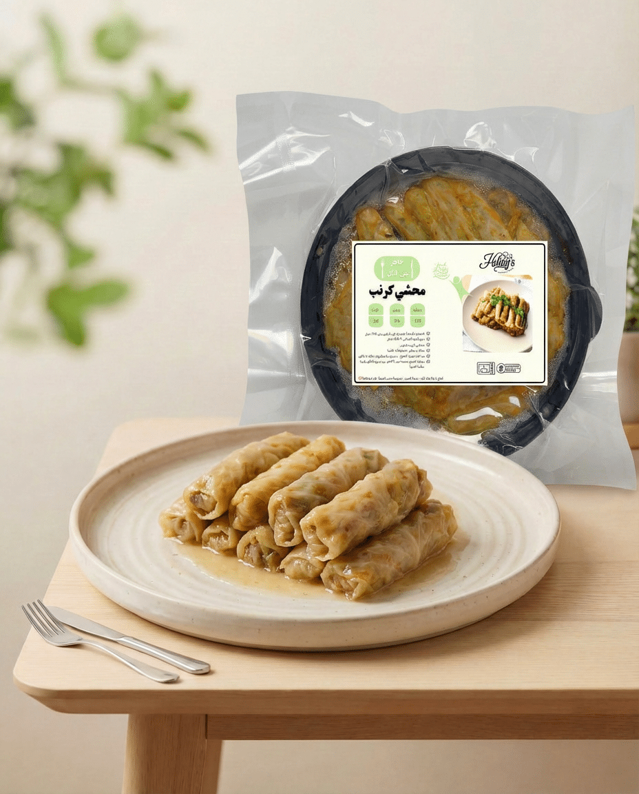 وأخيرًا، تحتوي العبوة على محشي كرنب جاهز للأكل بوزنٍ صافي تقريبي ±1000 جرام، ما يجعله مثاليًا لوجبة سريعة أو للمشاركة.