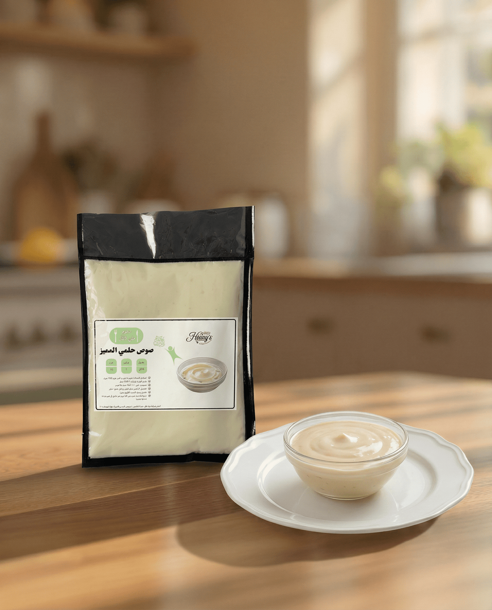 صلصة حلمي المميّزة جاهزة للأكل محضّرة من مايونيز بيتي وخليط سري من المكونات المتناسقة بقوام كريمي غني ونكهة لا تُقاوم، ومغلّفة بتفريغ الهواء للحفاظ على الجودة، وزن صافي ±500 جم (يكفي 4-3 أشخاص).